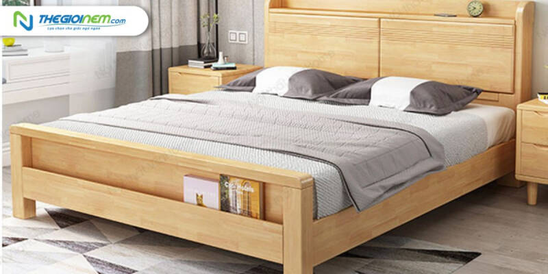 - Gỗ tự nhiên: giường có vân gỗ vô cùng đẹp mắt thế nên sẽ có giá thành cao hơn gỗ công nghiệp. Thế nên giường sẽ có độ bền cao, sử dụng lâu dài nếu bạn chọn mua giường có chất liệu gỗ chắc chắn.