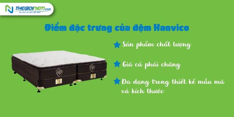 Hanvico đi đầu trong thị trường đệm tại Việt Nam, cũng là công ty tiên phong và đã đạt được vô số thành tựu đưa thương hiệu của mình vươn ra thế giới, Hanvico luôn chú trọng đến việc tạo ra sản phẩm và đặc biệt là việc làm cho sản phẩm có giá cả phải chăng nhưng vẫn đảm bảo chất lượng đạt chuẩn quốc tế.