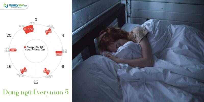 Phân bổ: gồm 1 giấc ngủ chính và 5 giấc ngủ ngắn, thời lượng dài 20 phút/ giấc.