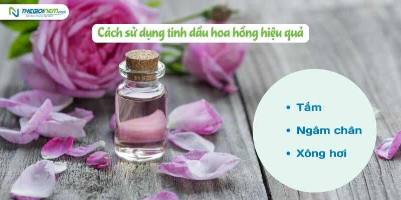 Ngoài việc sử dụng tinh dầu hoa hồng trong lúc tắm thì ngâm chân cũng là một lựa chọn tuyệt vời. Cụ thể, bạn chỉ cần thêm khoảng 5 giọt tinh dầu vào chậu nước ấm và ngâm chân trong vòng 10-15 phút sẽ giúp cơ thể thư giãn, sảng khoái. Đồng thời, giúp giảm các triệu chứng tê chân, lưu thông máu tốt và có được giấc ngủ ngon.