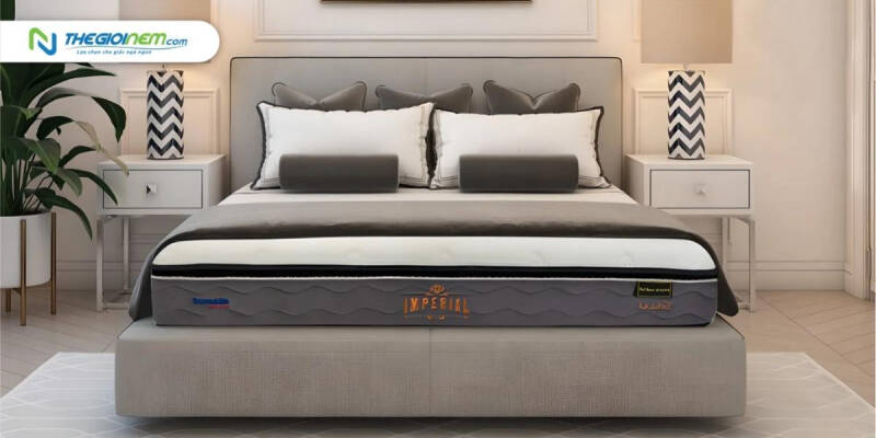 - Nệm lò xo túi Dunlopillo Imperial là lò xo túi độc lập cung cấp sự hỗ trợ vượt trội, độ bền cao và giảm thiểu khả năng chuyển động. Nệm có bề mặt nệm bổ sung lớp cao su thiên nhiên giúp gia tăng sự đàn hồi và nâng đỡ cơ thể. Ngoài ra, nệm cũng áp dụng công nghệ Nano - Dunlopillo Talasilver TM giúp kháng khuẩn, không gây dị ứng và ngăn chặn sự hình thành và phát triển của vi khuẩn mang đến cho bạn giấc ngủ ngon khỏe mạnh.