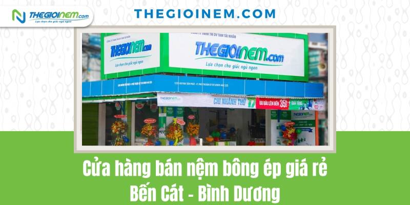 Nếu bạn có nhu cầu sở hữu những tấm nệm bông ép giá rẻ chất lượng để chăm sóc sức khỏe giấc ngủ thì hãy liên hệ ngay thông tin trên đây. Cửa hàng bán nệm bông ép giá rẻ Bến Cát là chi nhánh nổi tiếng của Thegioinem.com - hệ thống cung cấp và phân phối nệm chính hãng giá tốt, uy tín hàng đầu nước ta.