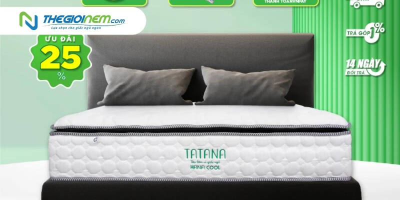 Nệm lò xo túi Tatana Hana Cool vô cùng phù hợp đối với khí hậu của nước ta, vì nệm có tích hợp thêm khả năng làm mát cơ thể khi nằm, tạo choa bạn cảm giác dễ chịu và thư giãn, dễ dàng chìm sâu vào giấc ngủ. Bên cạnh đó, nếu không gian căn phòng của bạn rất nhỏ, không thể sử dụng nệm lò xo vì có kích thước to và khá nặng. Bạn có thể xem xét qua các dòng sản phẩm nệm bông ép, chúng rất mỏng nhẹ và giá thành rất hợp lý.