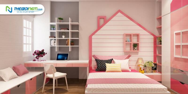 Ngoài ra, các món nội thất khác trong phòng cũng cần được thiết kế thấp để tạo cảm giác gần gũi và ấm cúng. Thay vì sử dụng các mẫu bàn học cao hay tủ đồ lớn, bạn có thể trang trí bằng những chiếc bàn ngồi bệt, tủ đầu giường, kệ treo quần áo nhỏ gọn để tạo sự thông thoáng cho căn phòng.
