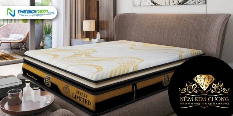 Nệm lò xo Kim Cương được sản xuất theo hệ thống công nghệ hiện đại với hàng ngàn con lò xo, mang lại tính bền bỉ theo thời gian và khả năng nâng đỡ vượt trội. Áo nệm được làm từ chất liệu sạch khuẩn và thân thiện với môi trường, thiết kế tinh tế, phù hợp với nhiều phong cách khác nhau và mang đến sự sang trọng cho phòng ngủ.