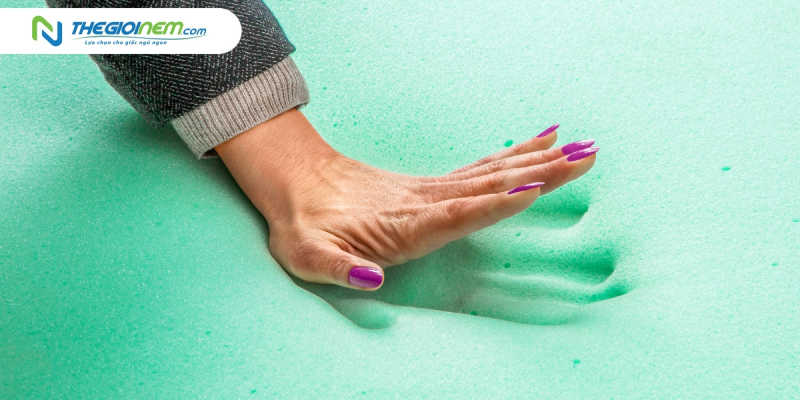 - Kiểm tra bằng tay: Bạn có thể ấn thử vào nệm và quan sát phản ứng của nệm với tác động để đánh giá độ đàn hồi của nệm. Nếu nệm trở về trạng thái ban đầu một cách nhanh chóng, chứng tỏ đây là loại nệm foam chất lượng.