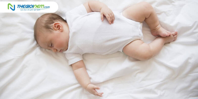 Trẻ nằm ngửa, tức là nằm trên lưng với cả hai chân thẳng. Đây là tư thế thông thường mà nhiều trẻ thích. Để đảm bảo thoải mái và an toàn, trẻ nên nằm trên một chiếc giường hoặc nệm mềm.