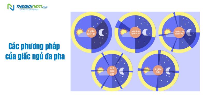 Lịch trình của chế độ ngủ đa pha thường không cố định và có thể thay đổi tùy thuộc vào cách mỗi người áp dụng, phù hợp với hoàn cảnh và mục tiêu cá nhân. Dưới đây là 3 cách thường áp dụng lịch trình ngủ đa pha: