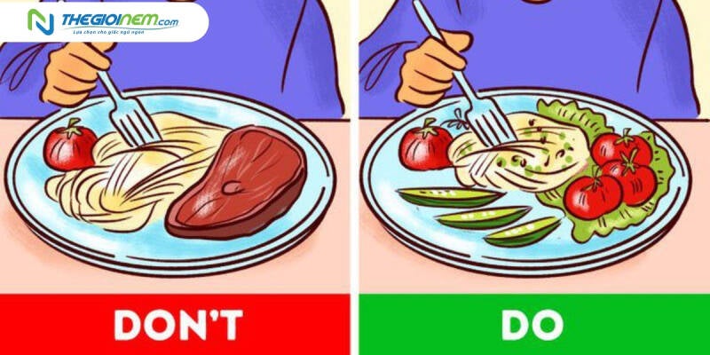 - Tránh ăn quá nhiều hoặc quá ít trước giờ ngủ. Thời gian cuối cùng ăn nên cách xa giờ đi ngủ ít nhất 2-3 giờ.