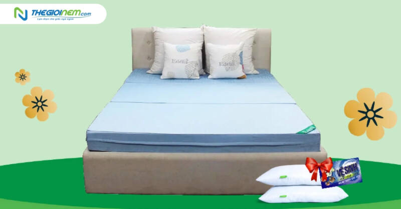 Nệm bông ép Eva được tạo ra từ những sợi bông cao cấp và kết dính bằng keo chuyên dụng, nên rất lành tính, an toàn đối với sức khỏe người dùng chắc chắn khi dùng nệm bạn sẽ không gặp phải tình trạng dị ứng da. Nệm còn có thiết kế gấp 3 rất tiện dụng, giúp việc vệ sinh trở nên dễ dàng hơn và bạn có thể di chuyển nệm đến mọi nơi mà không tốn quá nhiều sức.