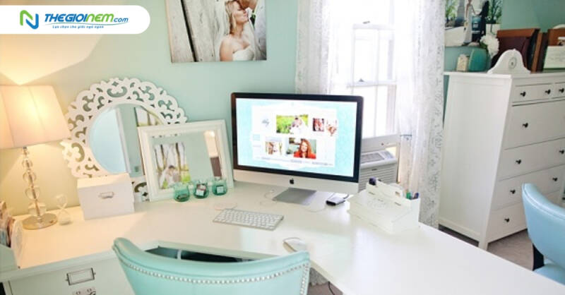 Ngoài phòng khách và phòng ngủ, có nhiều vị trí khác trong nhà bạn có thể chọn để treo ảnh cưới theo hướng phong thủy vợ chồng. Phòng làm việc là một trong những nơi lý tưởng để trưng bày những hình ảnh lưu niệm của gia đình, bao gồm cả ảnh cưới. Không gian làm việc thường không quá kiêng kỵ như các phòng khác, tuy nhiên, bạn nên tránh treo ảnh cưới đối diện cửa sổ, nơi có ánh sáng trực tiếp chiếu vào ảnh, vì phong thủy cho rằng điều này có thể gây ra bất lợi cho hôn nhân.