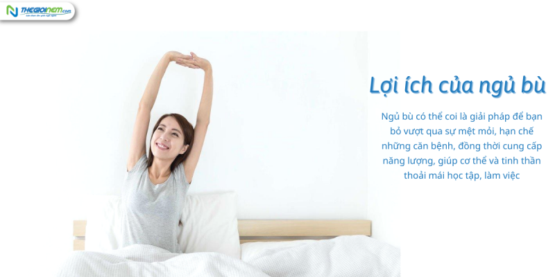 Ngủ bù là một cách đơn giản để chúng ta hồi phục lại cơ thể. Giữa muôn ngàn tác hại của thiếu ngủ và ngủ không đủ giấc, ngủ bù có thể coi là giải pháp để bạn bỏ vượt qua sự mệt mỏi, hạn chế những căn bệnh, đồng thời cung cấp năng lượng, giúp cơ thể và tinh thần thoải mái học tập, làm việc.
