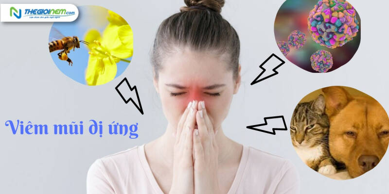 - Viêm mũi dị ứng: Một số người có cơ địa dị ứng với một số loại như phấn hoa, lông động vật, thức ăn. Khi tiếp xúc sẽ gây ra phản ứng dị ứng viêm mũi và làm tăng tiết dịch gây ra các biểu hiện như hắt hơi, chảy nước mũi và nghẹt mũi.