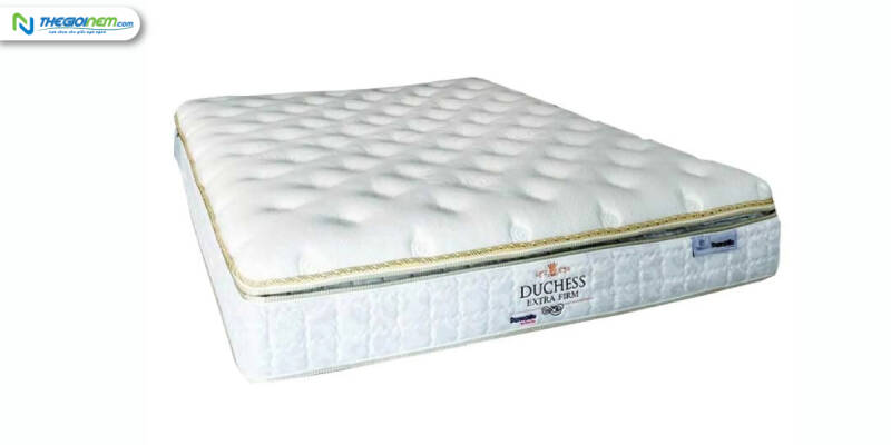 Nệm lò xo túi Dunlopillo Duchess được sản xuất từ nguồn nguyên liệu thép nhập khẩu cao cấp, áp dụng công nghệ từ Châu Âu cho ra đời một sản phẩm mang phong cách Hoàng Gia. Hệ thống lò xo túi độc lập sắp xếp dạng so le, giảm thiểu tối đa chuyển động cơ thể gây tác động đến người nằm cùng, đồng thời, mang đến sự hỗ trợ vượt bậc cho cột sống. Hệ thống siêu bọc bên ngoài có khả năng mở rộng diện tích nệm, giúp thoải mái khi nằm đồng thời kéo dài tuổi thọ.