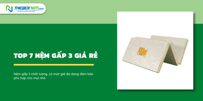 Top 7 nệm gấp 3 giá rẻ đang “HOT” trên thị trường hiện nay của Thegioinem.com là những sản phẩm được người tiêu dùng yêu thích và tin tưởng lựa chọn. Đây là những sản phẩm nệm gấp 3 chất lượng, có mức giá đa dạng đảm bảo phù hợp cho mọi nhà. Hãy cùng tìm hiểu kỹ hơn về nệm gấp 3 giá rẻ để từ đó chọn cho mình sản phẩm ưng ý nhất.